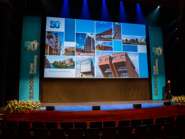 Het familiebedrijf BEMOG bestaat dit jaar 50 jaar en dat wordt groots en feestelijk gevierd voor ruim 600 relaties. Aan alles is gedacht, van bustransfers tot de give aways, van persoonlijke verhalen tot energieke optredens. In de theaterzaal worden de gasten vermaakt met een spectaculair optreden van Kensington, een prachtige docufilm over 50 jaar BEMOG en persoonlijke interviews met de eigenaar en het MT. Het tweede deel van de middag, het inspiriment met bezielende leiding van Ruud Veltenaar laat sprekers als architect Thomas Rau, sporters Erben Wennemars en Marc Herremans het verhaal vertellen over teambuilding, nooit opgeven, het beste uit jezelf halen en toekomstig ondernemerschap. De middag wordt afgesloten door een prachtoptreden van XoXo dancecompany uit Zwolle.